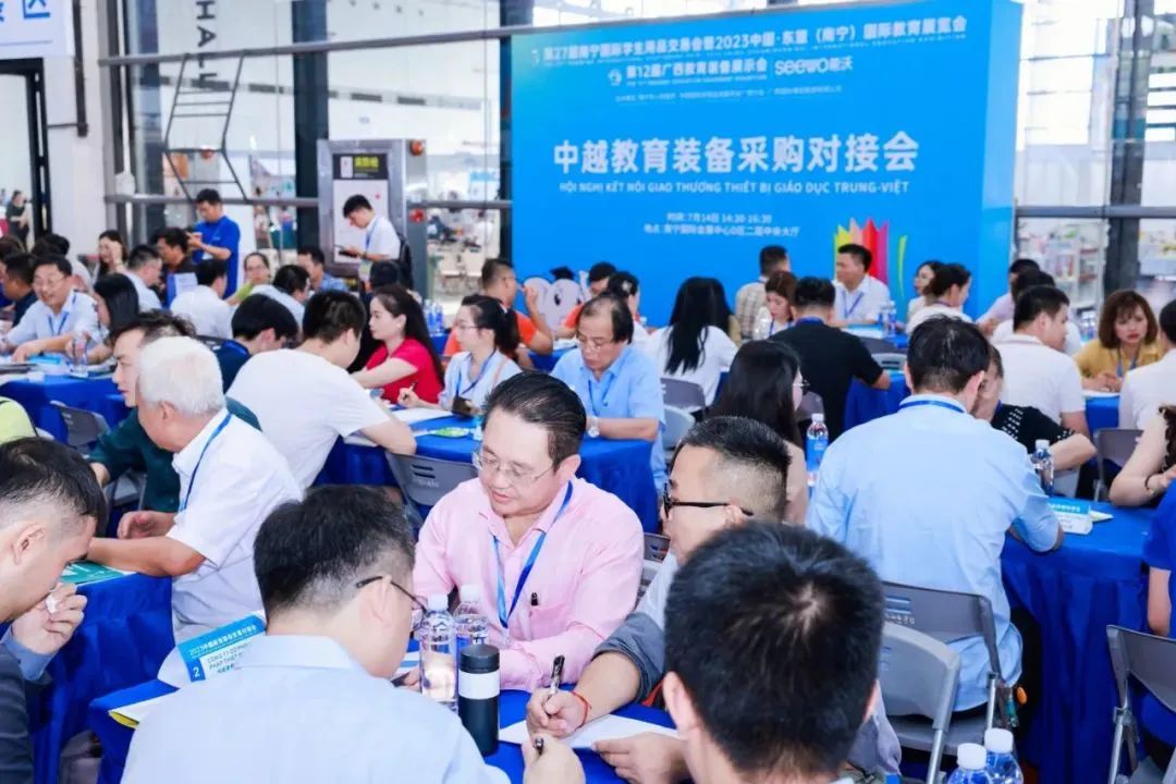 現(xiàn)場活動豐富:有中越教育裝備采購對接會為雙邊企業(yè)進(jìn)行精準(zhǔn)B2B高效撮合,探索跨境商業(yè)合作新機(jī)遇;廣西中小學(xué)創(chuàng)新實(shí)驗(yàn)優(yōu)秀案例展示交流活動體現(xiàn)廣西地域民族文化特征和教育科技創(chuàng)新精神;