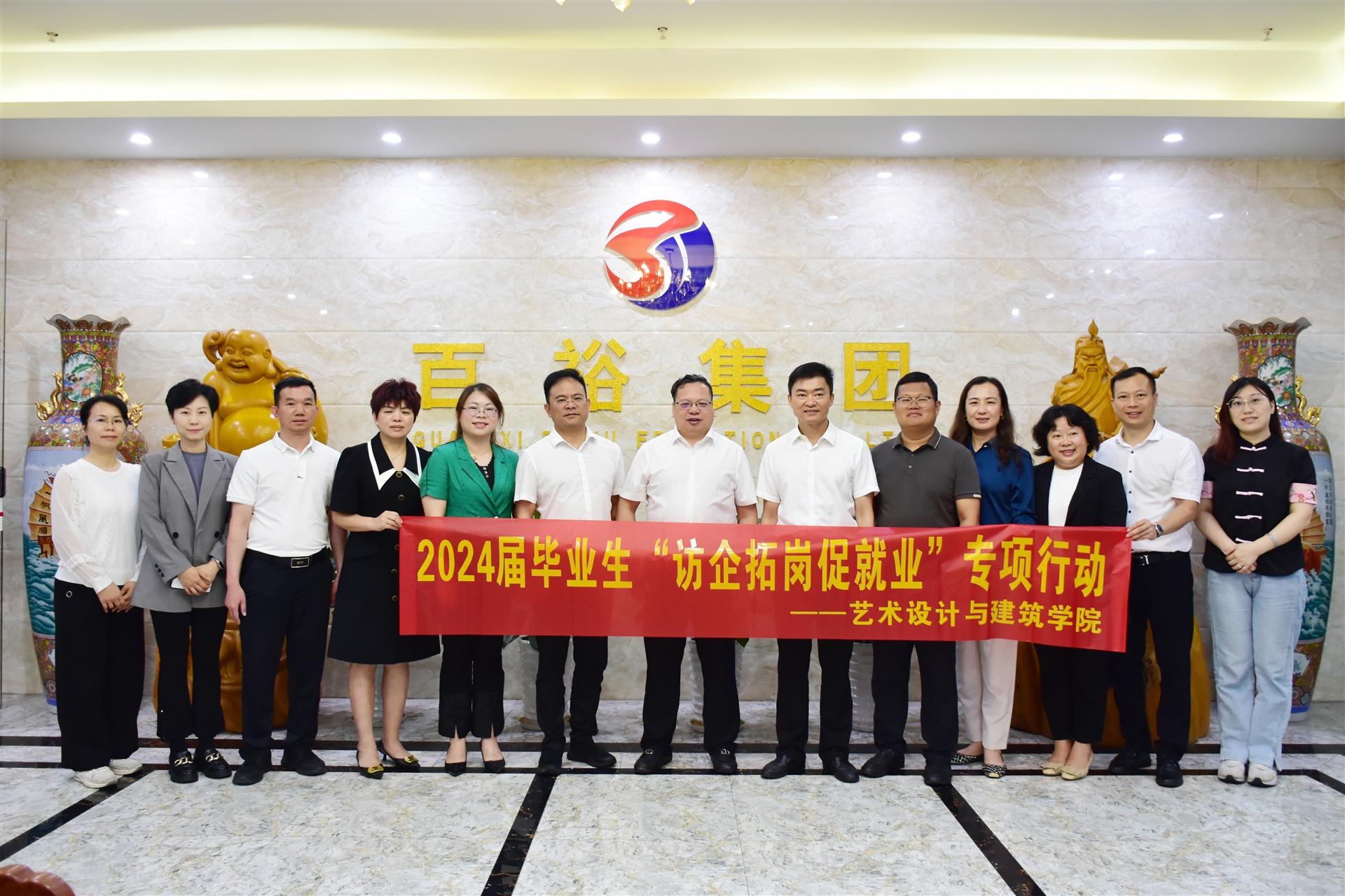 為推進“高校書記校長訪企拓崗促就業”專項行動,促進雙方優勢互補,實現資源共享、協同育人。5月9日上午,廣西經貿職業技術學院校長羅生芳帶隊蒞臨百裕集團營銷中心開展訪企拓崗專項活動。藝術設計與建筑學院黨總支書記陳雪雯、藝術設計與建筑學院院長陳超華、藝術設計與建筑學院專職副書記朱其偉等陪同走訪。